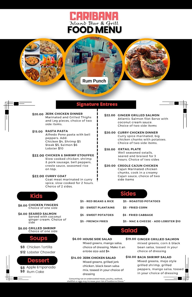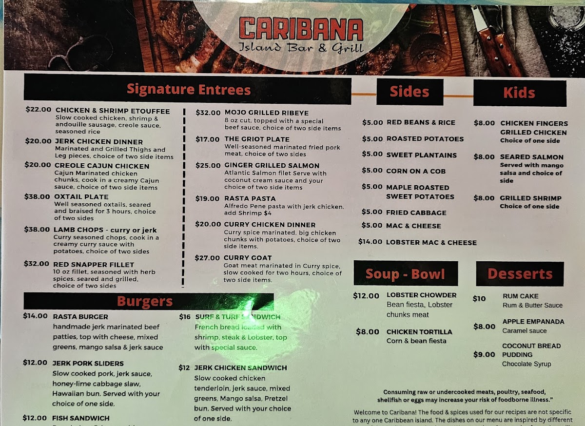 Don't miss out on their decadent Desserts, including Rum Cake and Coconut Bread Pudding. Each dish is crafted with love, creating an inviting atmosphere that feels like home. Caribana - Island Grill is not just a meal; it's an experience. Come indulge in the warmth and richness of Caribbean cuisine.